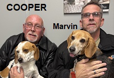 ADOPTED BY THE SCHLETT FAMILY AND SOS ALUMNI MARVIN - 12/5/25 Cooper is a red/white beagle boy. Very sweet boy given away at a co-op. A rescue friend took him in and asked our help. Playful but a bit dog humpy as just neutered. He corrects well with other dogs. Kind of shy at first but then all love. Picky eater we think used to table food. Contact Linda of SOS Beagle Rescue