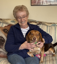 ADOPTED BY THE GEREFFI FAMILY - 12/20/25 A stunning liver and white ticked boy, Charlie is all personality and plays well with others. His special friend in Doggie daycare was Cheddar, another SOS boy. He can be vocal but friendly with other dogs and people. At around 2 years old he is a great age. House, cat, Kids unknown but kind demeanor and behavior suggest experienced kids in a dog family. Contact Rayne of SOS Beagle Rescue