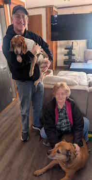 ADOPTED BY THE McIVOR FAMILY AND SOS ALUMNI MIRANDA - 3/16/26 Rodger and Dodger both showed up at a small rural shelter to be pulled to a slightly larger humane society for more exposure. After a couple weeks and little beagle attention we were asked to help.
